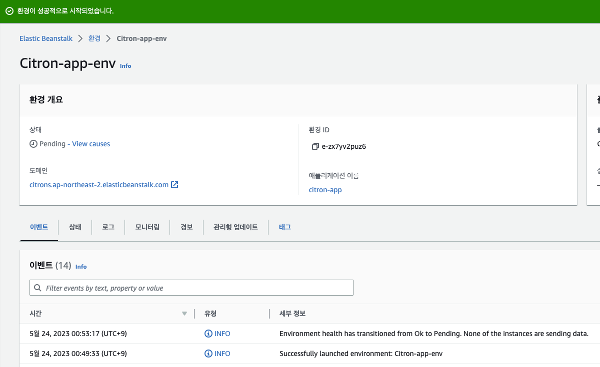 - private subnet 에 beanstalk 환경을 구축하였으나 실패했다 (pending -> Info)